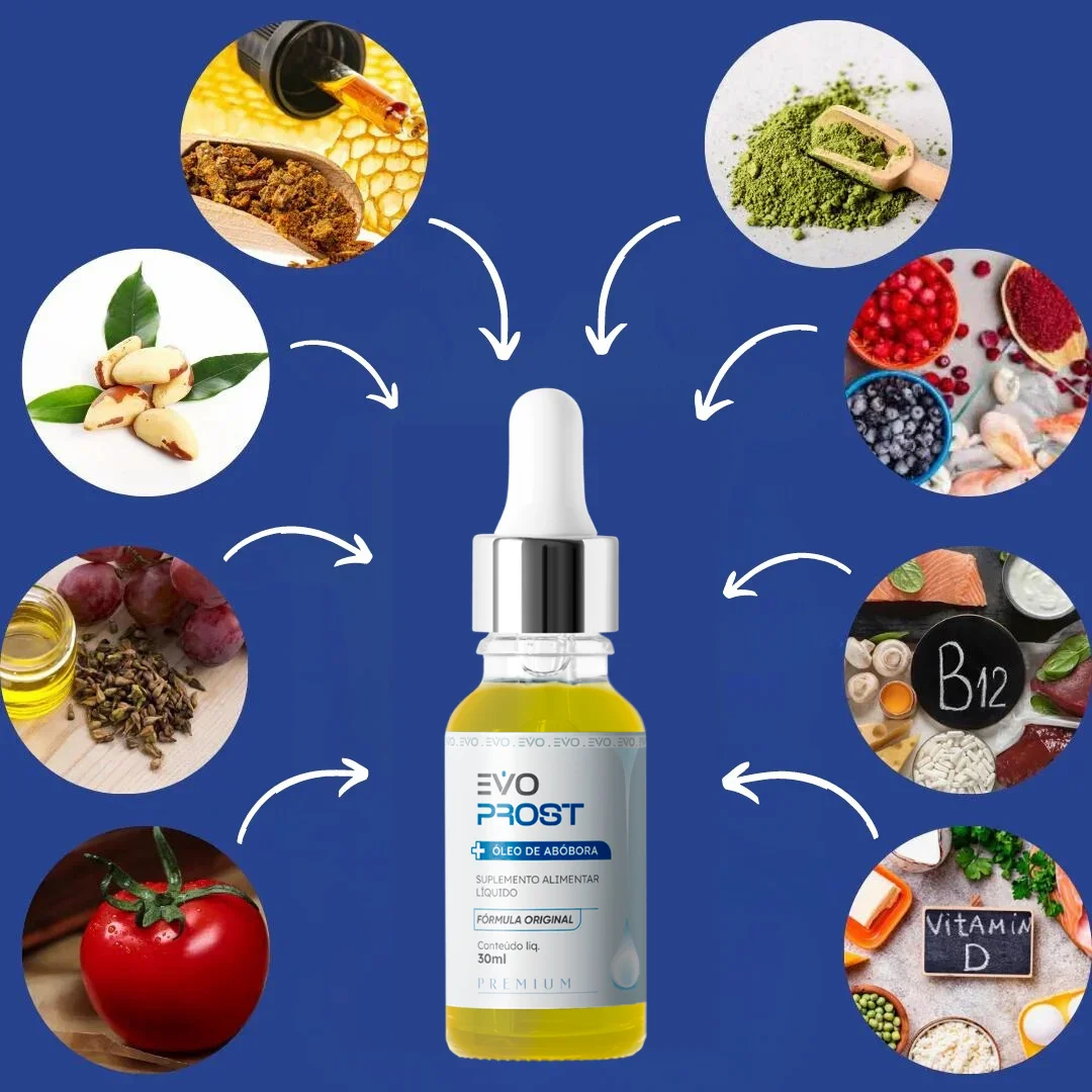 A composição do Evo Prost Gotas contém muitos componentes naturais! Vou listar alguns deles, por exemplo: